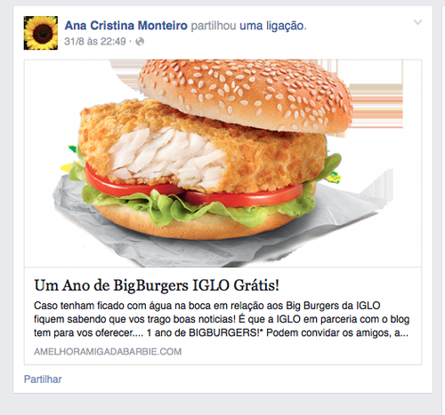 * Oferta de um ano de bigburgers - a IGLO oferece um vale cujo montante é equivalente à compra de dois packs por mês, durante 12 meses.