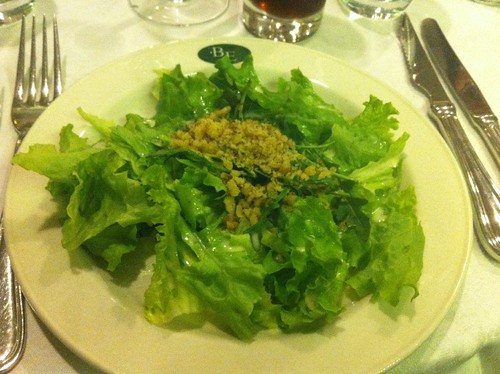 O prato principal - entrecosto claro está... e um molho especial que é o segredo da "casa". Para entrada para além do pão e das manteiguinhas e patês, há duas saladas de opção uma de salmão ou outra com nozes (na foto), segue-se então o prato já referido... e a maravilhosa opção que é ... SEITAN. Quem não comer carne - como eu - pode pedir seitan com o mesmo molho! ;)