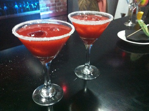 Estive com a Martuxa com quem me divirto sempre muito e com quem abri a excepção à minha negação ao álcool para um brinde "aos recomeços". A bebida é especial e tem uma história engraçada... ela gosta do Sal das "Margaritas" e eu queria um daiquiri de morango... como eu já sabia que ela ia pedir uma Margarita só por causa do sal... pedi para personalizarem a bebida ;) Saiu um Daiquiri salgadinho.