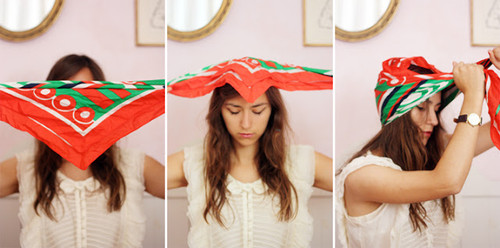A dica : escolham um lenço quadrado com um tamanho razoável e não larguem a imagem que ensina! Vamos lá aprender a fazer um turbante :