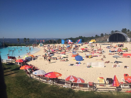 A paisagem é mesmo bonita, rios, barragens, pinhais um verde viçoso que vai crescendo à medida que subimos no mapa. Malas no quarto do hotel e fomos espreitar a Live Beach - a primeira praia artificial da Europa - onde no domingo vimos o concerto do Anselmo Ralph.